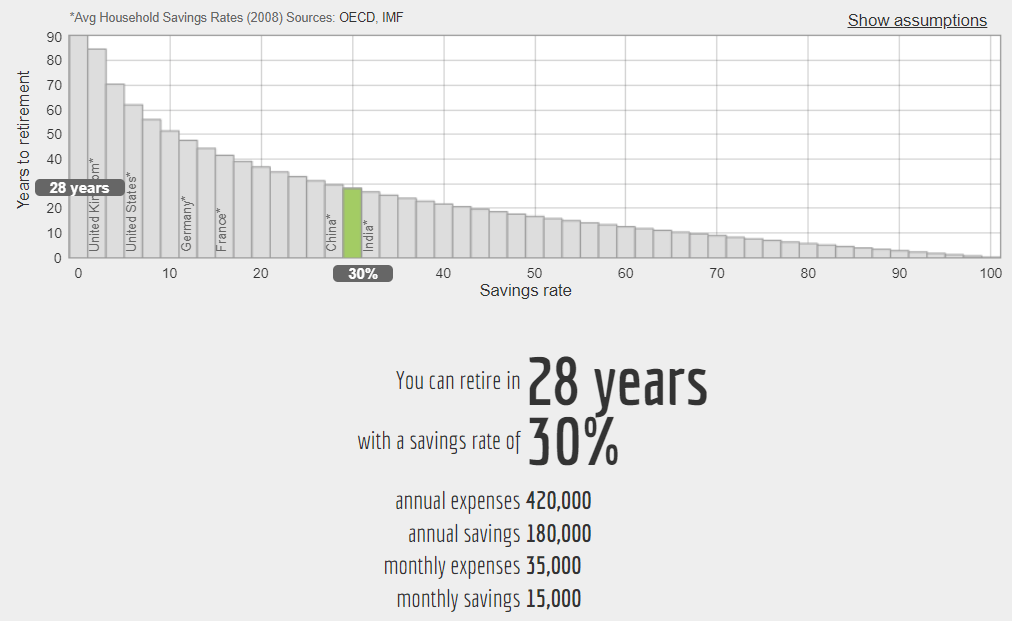 Below there are some calculators that show you how I got to this number, and how you can retire early as well.